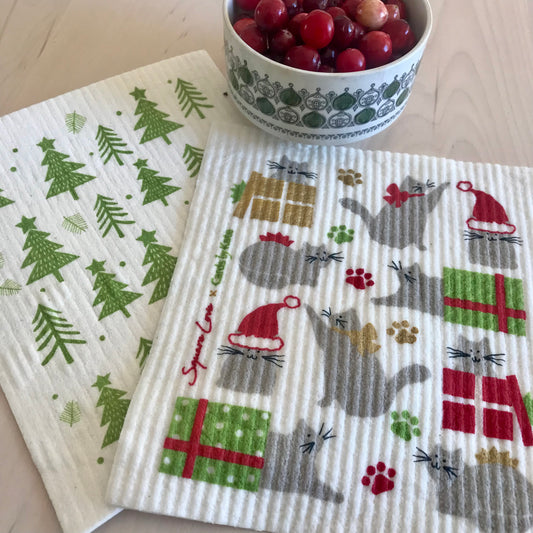 Holiday Cats Swedish Dishcloth