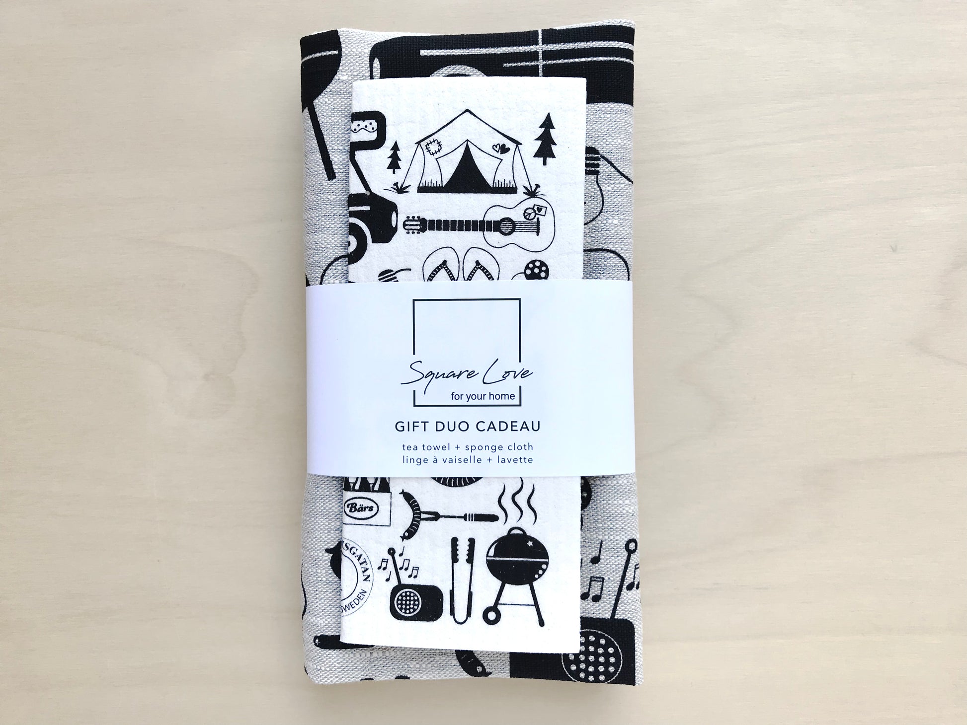 This Gift Duo includes 1 linen tea towel + 1 matching sponge cloth